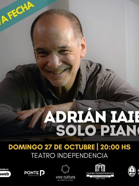 El pianista Adrián Iaies, uno de los referentes del jazz argentino, ofrecerá un concierto el domingo 27 de octubre en el Teatro Independencia. El músico interpretará temas de artistas como Spinetta, Bill Evans, Troilo, entre otros. Las entradas pueden adquirirse en Entradaweb.com.ar.