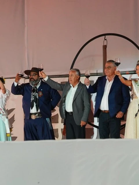 Posteriormente, el Gobernador realizó los tres golpes de reja -descanso, gratitud y justicia- y encabezó el brindis con el vino nuevo, símbolo del compromiso con el esfuerzo de quienes sostienen la producción y la identidad mendocina.