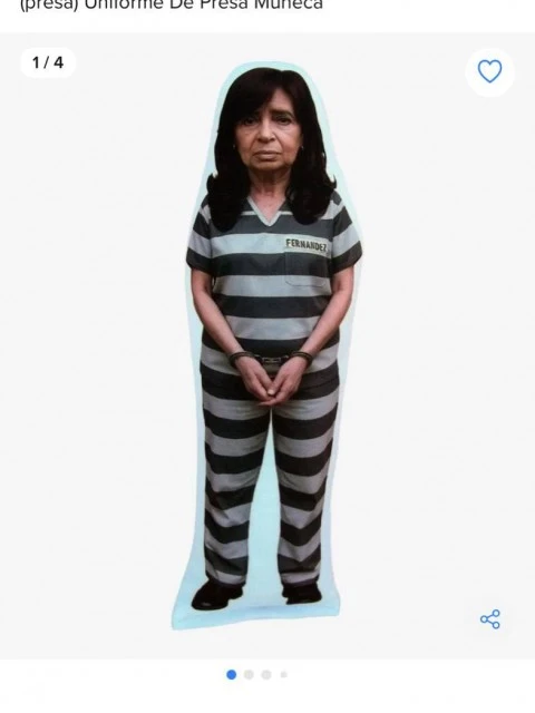 En la plataforma de Marcos Galperín, Mercado Libre, un usuario ofrece a la venta un almohadón personalizado con la imagen de Cristina Fernández de Kirchner vestida de presa. La publicación aclara, casi con pudor, que sólo se vendieron cinco unidades. Como si el dato suavizara algo. Como si cinco no alcanzaran para revelar el clima de época.