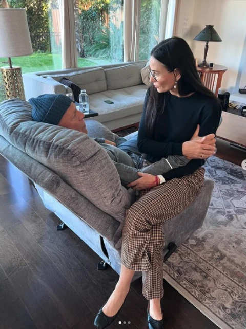 Escribió la actriz Demi Moore en su cuenta de Instagram junto a la publicación de una foto reciente donde se la ve sentada junto a Bruce Willis en un sillón.