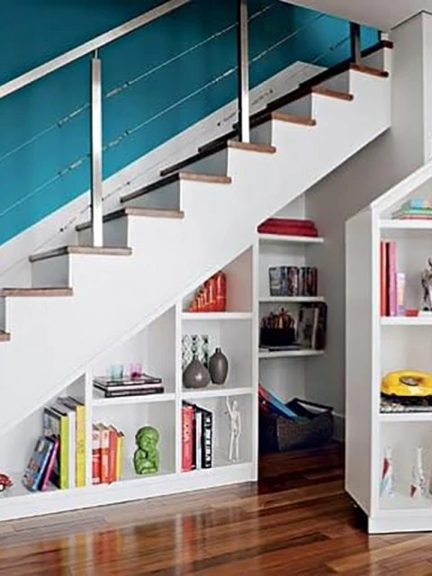 Si tu departamento cuenta con escaleras, el espacio debajo de ellas es un lugar perfecto para instalar soluciones de almacenamiento. Puedes crear armarios, estanterías o incluso un pequeño rincón de oficina. Este espacio, que a menudo se desperdicia, puede convertirse en una zona muy útil.
