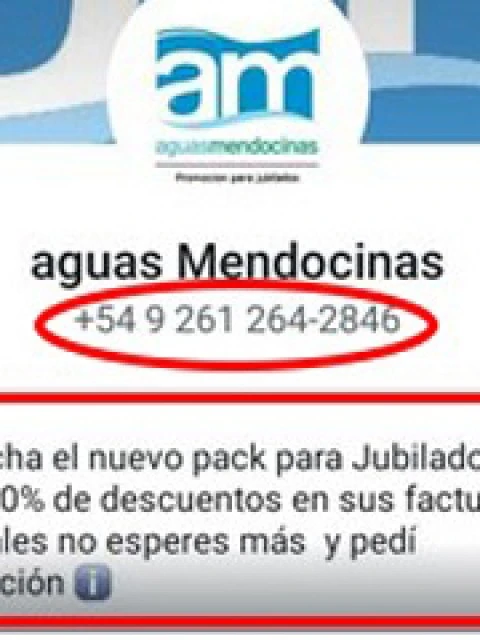 Aguas Mendocinas alerta a la población sobre mensajes engañosos en Redes Sociales y WhatsApp orientados, principalmente, a Jubilados. El comunicado oficial de la empresa prestadora del servicio.