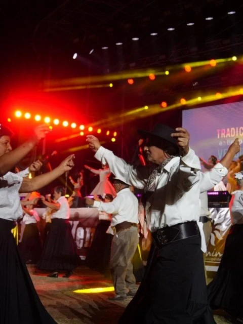 Por la noche, el escenario mayor reunió a una destacada cartelera artística: Cuarto Creciente, Rebelión Gaucha, Salú Compadre, Los Trovadores de Cuyo y Los Filippis animaron una velada llena de música, danza y raíces populares.