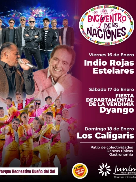 Del viernes 16 al lunes 19 de enero, el departamento será escenario de una agenda cultural de gran relevancia que incluirá el Encuentro de las Naciones, la Fiesta Departamental de la Vendimia y espectáculos musicales con artistas de primer nivel nacional e internacional.