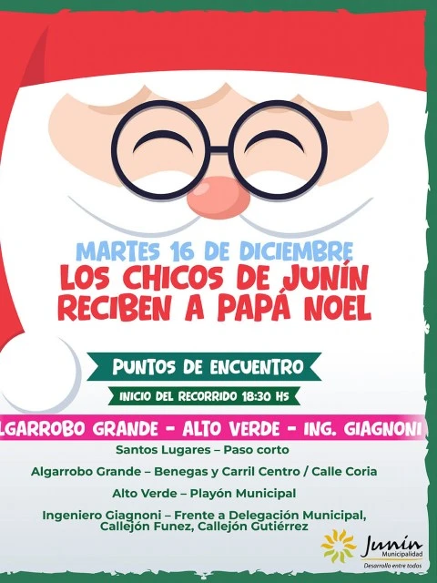 La Municipalidad de Junín informa que, como cada año, la caravana de Papá Noel recorrerá los barrios del departamento para llevar alegría, ilusión y espíritu navideño a cada rincón. La actividad está pensada para que las familias puedan acercarse, tomarse fotografías y vivir un encuentro único junto a Papá Noel.