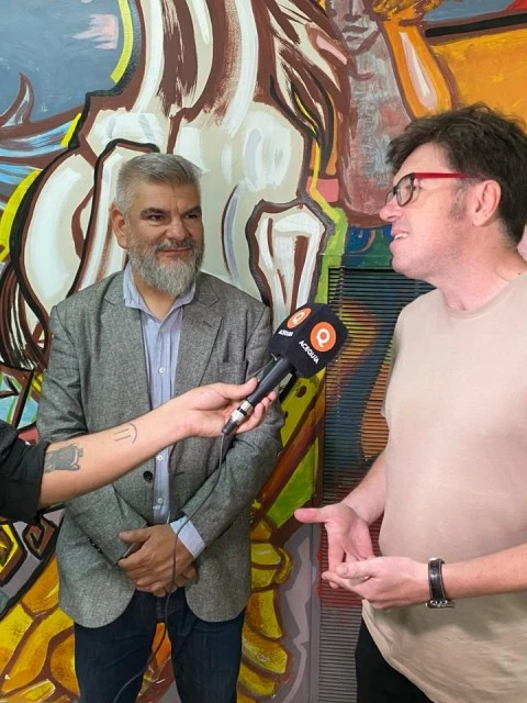 Patricio Pina y Diego Gareca, en la Nave Central del Espacio Cultural Julio Le Parc