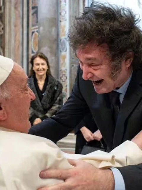 El Papa se desplazó en su silla de ruedas para saludar con afecto a Milei. El presidente respondió con idéntica actitud. Y en declaraciones, Javier Milei anticipó que la audiencia de este lunes será "fructífera", y destacó al Papa Francisco como el argentino más importante de la historia, dato que por fin tiene asidero comprobable.