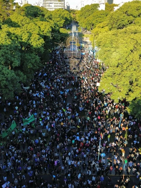Más de 40 mil personas marcharon hasta la Plaza Independencia en defensa de la educación pública y en contra de las políticas de Javier Milei quien pretende desfinanciar las universidades.