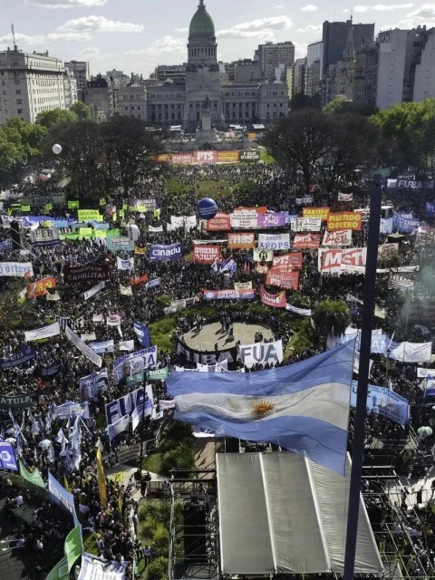 Luego de que el presidente Javier Milei anunciara el "veto total" de la ley de actualización presupuesto universitario, toda la comunidad universitaria, gremios, docentes y no docentes, trabajadores, jubilados, organizaciones sociales, políticas, y toda la comunidad, llenaron las calles del Congreso para decirle no al veto a Ley de Financiamiento Universitario.