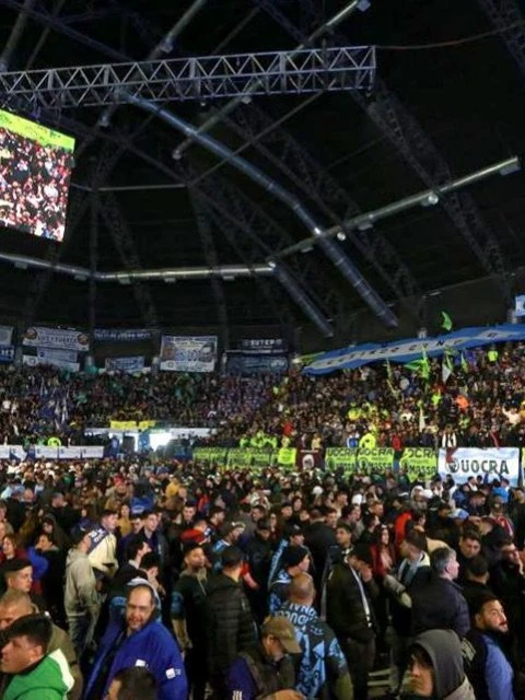 El precandidato presidencial de UP, Sergio Massa, recibió el apoyo a su candidatura de la Confederación General del Trabajo (CGT) en el Estadio Arena de Malvinas Argentinas