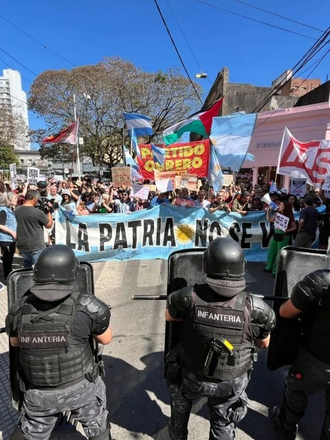 Las protestas en Santa Fe de este sábado empezaron minutos antes que Milei llegara al hotel Los Silos, punto en el que el mandatario intentara realizar la caminata.