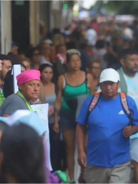 La fila que comenzó en la sede de Capital Humano se extendió por casi 5 kilómetros, siempre sobre las veredas, y custodiada por efectivos de la policía con escudos, atentos para aplicar el protocolo antipiquetes que prohíbe los cortes de calle.