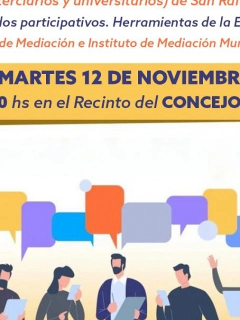 El próximo 12 de noviembre, en el Concejo Deliberante de San Rafael, se realizará una jornada destinada a jóvenes para promover la resolución pacífica de conflictos. La actividad, organizada por el área de Mediación Municipal, contará con la participación de especialistas y está abierta a estudiantes de secundaria y nivel superior
