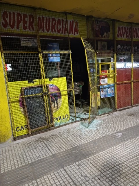 A la vuelta del asalto ocurrido en la noche del sábado, en la que un delincuente sometió a una empleada de la Zapatería "Ana Express" de avenida San Martín 1377 de la capital mendocina, en la madrugada de este lunes 23, rompieron la reja y la puerta de blíndex del comercio Super Murciana, de calle San Juan al 1280