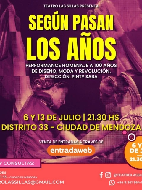 "En "Según Pasan los Años" se reúnen artistas mendocinos de diferentes rubros(actores, vestuaristas, bailarines, coreógrafos, cineastas, técnicos, escenógrafos), paracrear este evento que durante una hora le permitirá a los espectadores viajar a loslargo de los anos y sorprenderse con descubrir algo que estaba oculto quizás debajode las telas. Ver la relación estrecha entre los diseñadores y la gente, entre ellos y elcine, entre ellos y las estrellas de la música, entre ellos y las ideologías, entre ellosextranjeros y nosotros argentinos", comenta Pinty Saba, al frente de la idea y ladirección de esta propuesta deslumbrante.