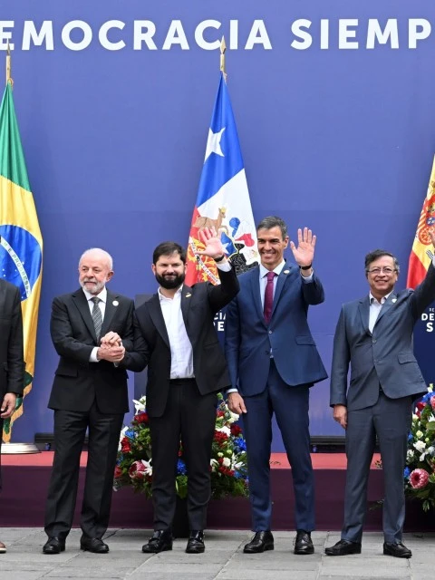 Este lunes en Santiago de Chile participaron de la reunión de alto nivel Democracia Siempre los presidentes Gabriel Boric de Chile, Luiz Inácio Lula da Silva de Brasil, Gustavo Petro de Colombia, Yamandú Orsi de Uruguay, y Pedro Sánchez de España, para reafirmar "el compromiso" de sus "naciones con la profundización de la democracia" frente a los avances de los extremismos.