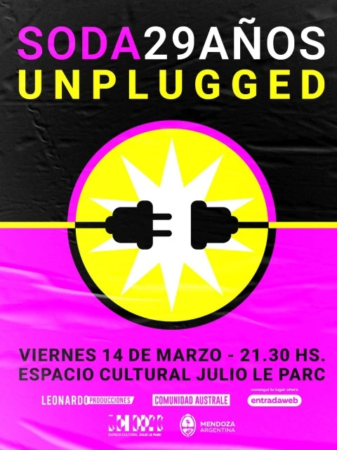 El próximo viernes 14 de marzo, a las 21:30, la Sala Vilma Rúpolo del Espacio Cultural Julio Le Parc será el escenario de "Soda Unplugged: 29 Años". Este espectáculo homenaje busca revivir la magia del mítico MTV Unplugged de Soda Stereo, a casi tres décadas de su grabación.