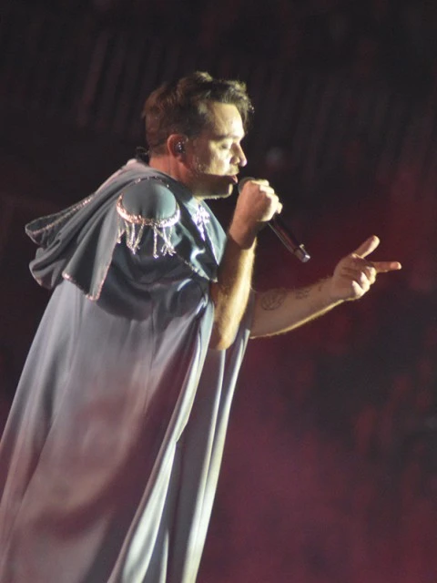 Chano, luciendo una icónica capa celeste, no tardó en adueñarse de la pasarela. Con los primeros compases de "Ella", el teatro estalló con saltos y bailes, potenciado por un despliegue de fuegos artificiales y una narrativa visual que acompañó cada acorde.