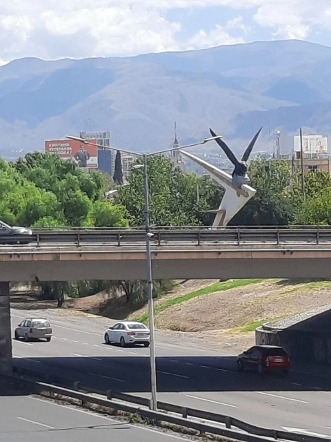 En 1958, en el lugar en el que convergen hoy las rutas nacionales 7 y 40, el primero de marzo, se erigió un monumento al ave que solemos admirar por su gran tamaño y presencia en la Cordillera de Los Andes. Mediante la decisión de la Dirección Nacional de Vialidad, se le había encargado la obra a los ingenieros Molina y Taboada. Una resolución abstracta muy de época.