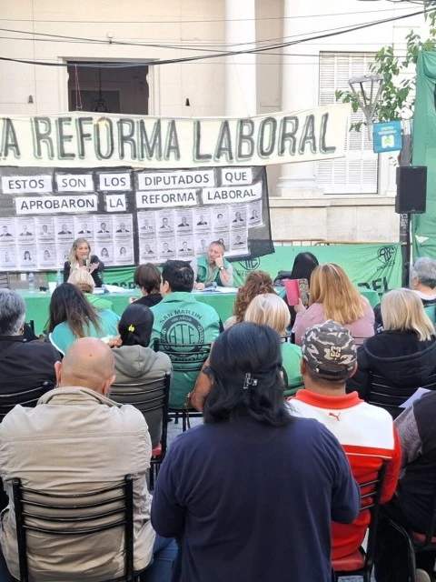 "por eso, queremos decirles a los trabajadores, que este miércoles tenemos que estar todos acá, en la Legislatura, porque tenemos que luchar en unidad por nuestras vidas, derechos, estabilidad laboral, alimentos y por nuestros hijos. Esto va mucho más allá de los derechos que nos quieren arrebatar, desde el punto de vista humano, social y económico. Tenemos que venir a defender la democracia, porque no podemos permitir que el Gobierno haga desaparecer a la salud y a la educación pública".