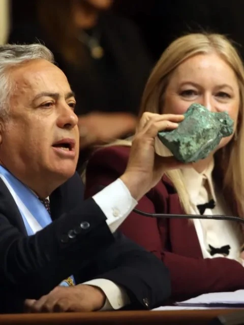 "Queremos tener el mismo prestigio y el mismo cuidado ambiental que tuvimos para esto, con este producto", aseguró, volviendo a elevar la piedra ante la mirada de la platea política. "Queremos ser reconocidos como grandes productores de cobre para nuestro planeta".