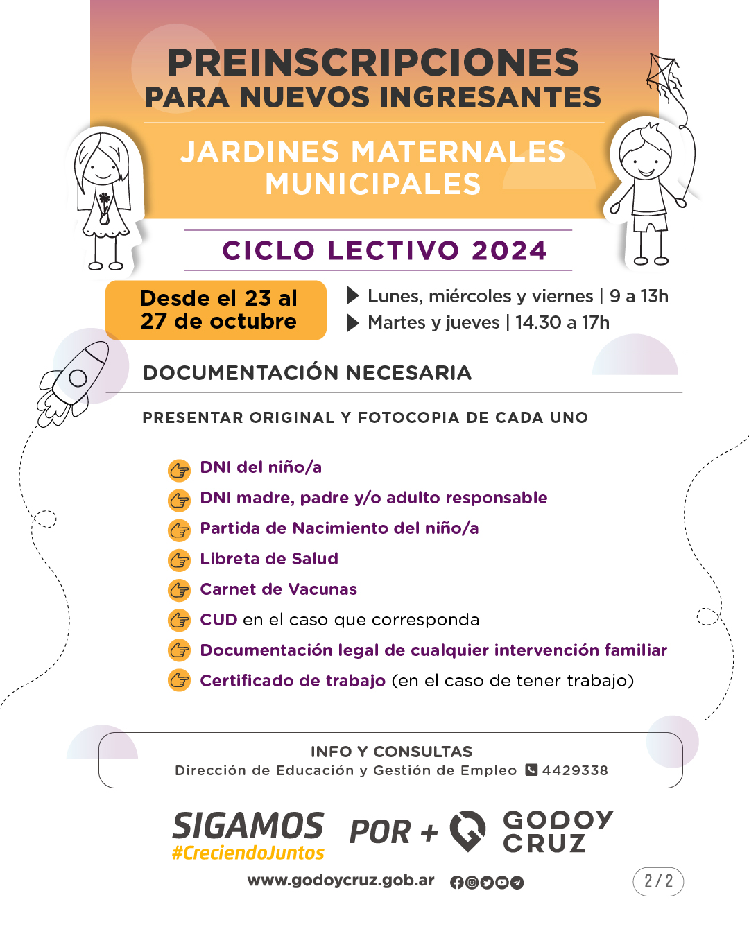 Entonces, las familias interesadas deberán acercarse a la sede de cada jardín con la documentación requerida.